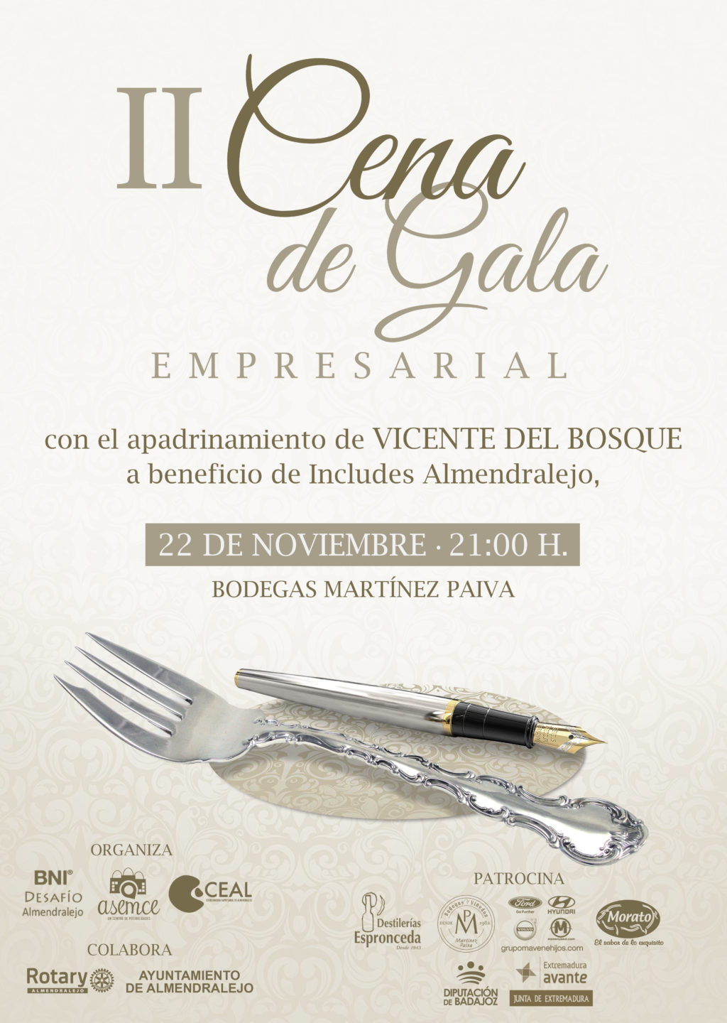 El próximo Viernes día 22 de Noviembre , tendremos la II Cena de Gala Empresarial , organizada por CEAL , BNI Desafío y Asemce . En esta ocasión nos acompañará D. Vicente del Bosque.